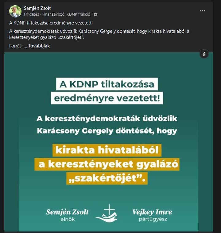Világnézeti szabadság: A látszat ellenére a támadás nem egy konkrét világnézet ellen szólt, hanem a világnézet nyilvános felvállalása ellen. Azt üzeni, hogy a közéletben csak a KDNP által jóváhagyott keretek között lehet létezni. Ez egy modern kori blaszfémia-eljárás, amit láttunk már a nemzeti park igazgatójának vagy egy rendőrnek az eltávolításánál is: a KDNP bemondja az ukázt, a rendszer pedig végrehajtja.