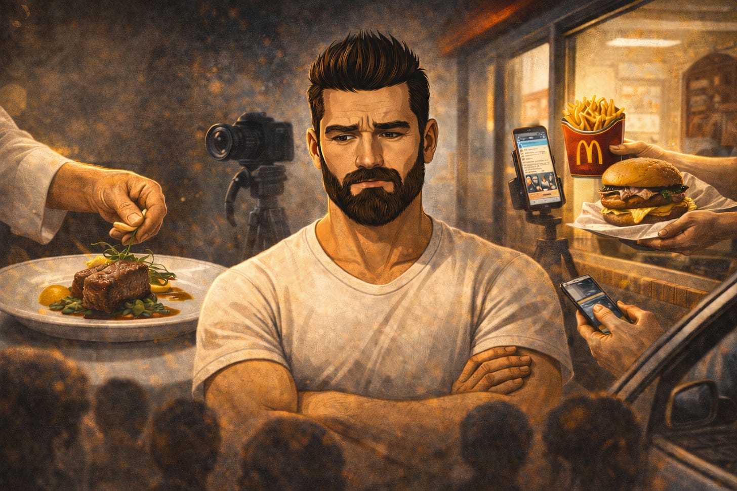 Szeretek úgy gondolni a tartalomgyártásra, mint a gasztronómiára. Nézd meg a McDonald’s-ot. Mindig tele van. Milliók esznek ott naponta. Gyors, olcsó, tele van ízfokozókkal (dopaminnal), de tápértéke nulla. Hosszú távon megbetegít. Ez a mainstream média. Ez a politika. Ez a bulvár. És nézz meg egy eldugott, Michelin-csillagos kis éttermet. Lehet, hogy csak öt asztal van. Lehet, hogy kevesen ismerik. De aki oda betér, az nem „zabálni” akar, hanem átélni valamit. Az az étel szeretettel, szakértelemmel és odafigyeléssel készült.